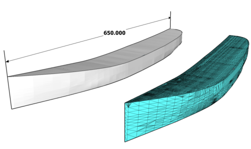 Finished with half the hull. The 650 mm length is to fit in the area of my dock on my layout. This is actually close to the length of the real Grazyna at 30.7m/100.7 ft in length .. in 1:48 that’s 25.175″ / 639.4 mm. Next I will need to divide the CAD up into probably 4 pieces so I can print them.